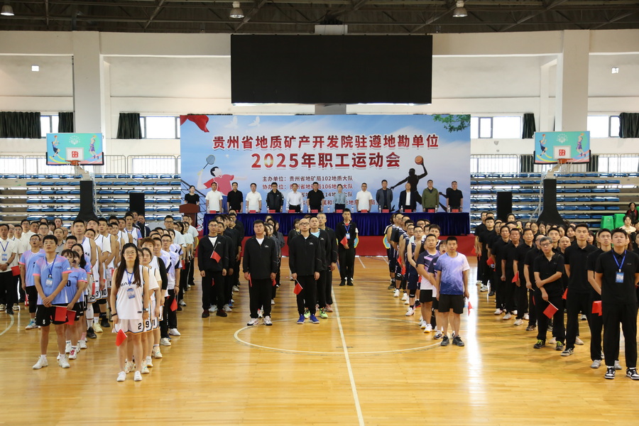 为庆祝中华全国总工会成立100周年、迎接中华人民共和国成立76周年,2025年9月24日上午,贵州省地质矿产开发院驻遵地勘单位2025年职工运动会开幕式在遵义市汇川区市民健身中心隆重举行。